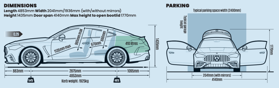 With that said, CLE more C-Class than E-Class adjacent است, being just shorter than smaller saloon (4853mm versus 4927mm) و having same dashboard. اما, C-Class conceived برای take only four-cylinder engines, پس CLE some of E-Class’s front structure برای accommodate longitudinal six-pots استفاده میکند.